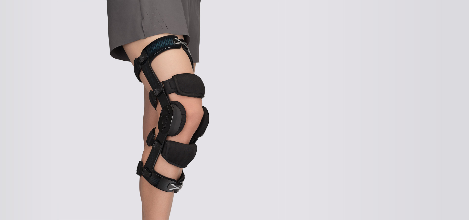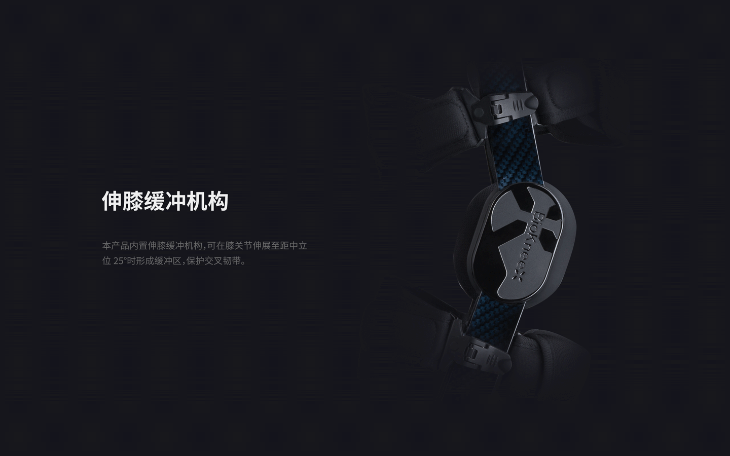 本产品内置伸膝缓冲机构,可在膝关节伸展至距中立位25°时形成缓冲区,保护交叉韧带。