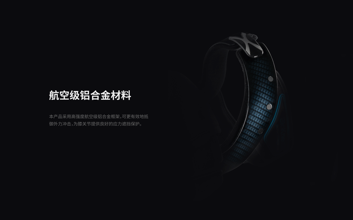本产品采用高强度航空级铝合金框架,可更有效地抵御外力冲击,为膝关节提供良好的应力遮挡护。