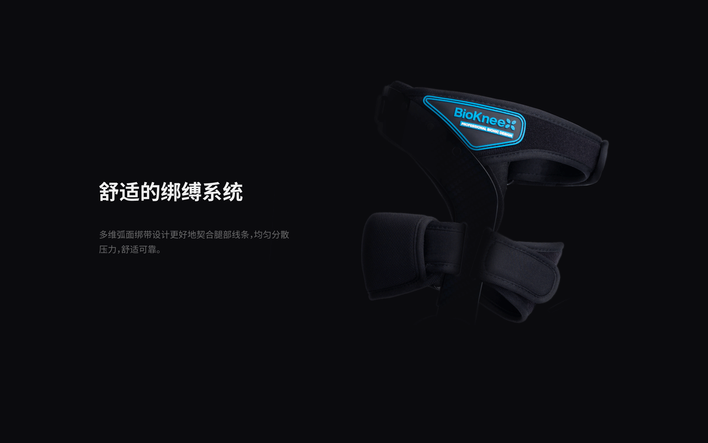 多维弧面绑带设计更好地契合腿部线条,均匀分散压力,舒适可靠。关节提供良好的应力遮挡护。